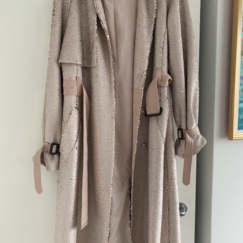 Ted Baker Muu takki, beige väri, koko S tai M (villakangastakissa kokomerkintä 4), naisten malli. Takissa on vyö vyötäröllä ja se on suunniteltu naisille.