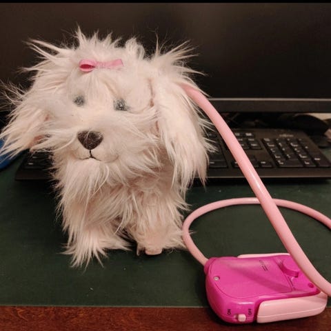 Myydään pattereilla toimiva koira, liikkuu ja haukkuu. Selässä aktivointinappi.