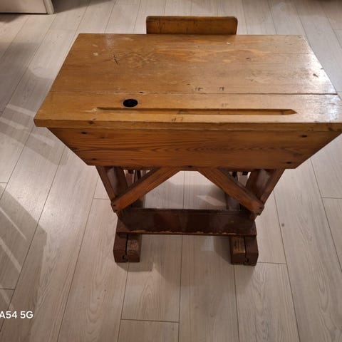 Myydään kunnostettu vanhanajan pulpetti ja tuoli. Hiljattain hiottu ja lakattu.