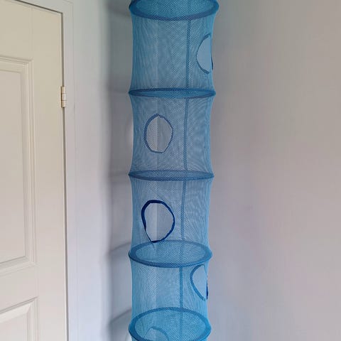 Roikkuva säilytyspussi lokeroilla. Saa roikkuun naulakkoon tai kattoon.
