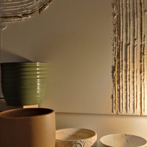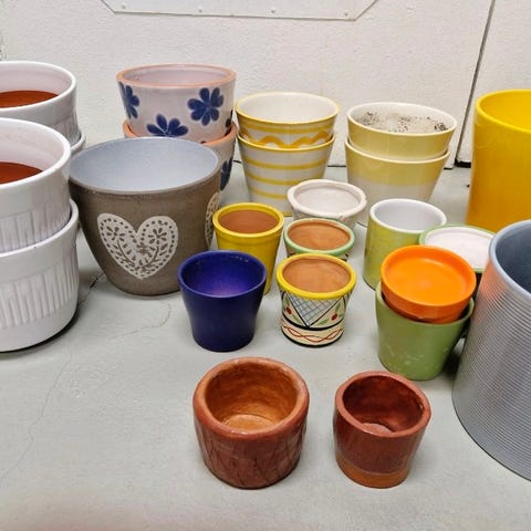 Taiteilijan tekemiä kukkia ja ruukku posliinia