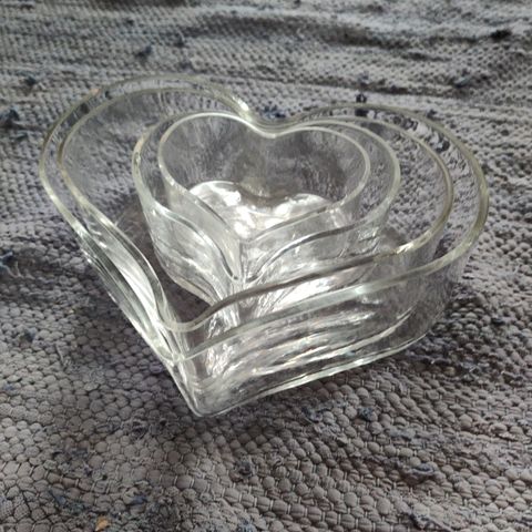 Upea sydämen muotoinen lasimalja. Malja jämäkkää, paksua lasia (paksuus yläreunassa n. 0,7 cm). Maljan leveys leveimmästä kohdasta n. 14 cm, syvyys n. 12 cm ja korkeus n. 6,5 cm. Maljan pohja on paksu, joten varsinaisen maljan korkeus n. 4 cm. On erittäin siistissä kunnossa. Hinta 25€. Nouto Espoo / Helsinki (esim. Espoontori / Lippulaiva / Sello / rautatieasema / Kamppi). Voin myös postittaa, jolloin postituskulut lisätään hintaan. Tori-diili tai tavallinen postitus.