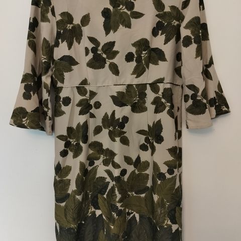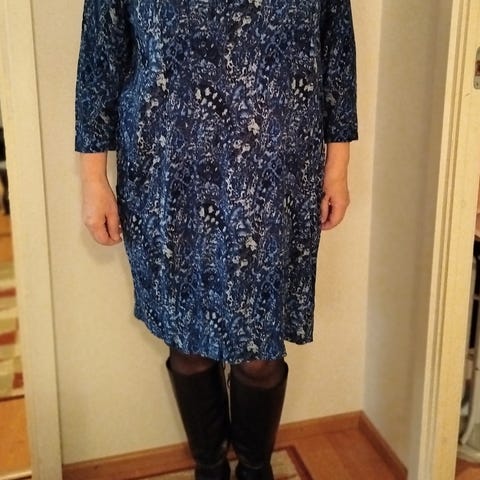 Indiska naisten mekko, koko XL. Mekossa on kirjava batiikkikuviointi. Viskoosia 100% Hiukan levenevä helma ja hihansuut