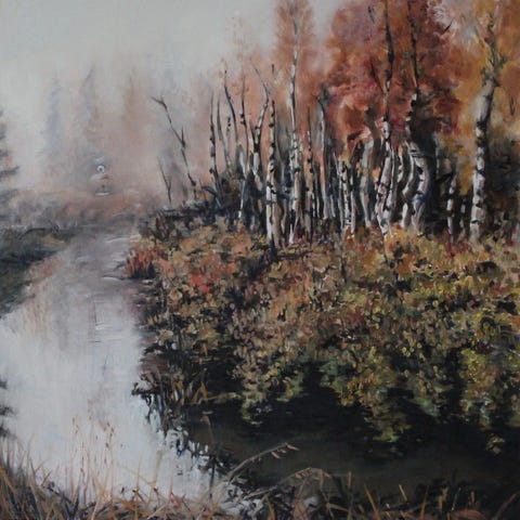 Öljyvärimaalaus “Noita” maisema ja asetelma kangas taulu