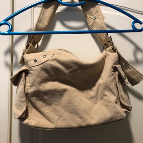 Samettinen olkalaukku, ei ole käytetty. Ulkopuolella pieni tasku, sisällä ei erillistaskuja. Sisällä vuori. Koko 40 cm x 29 cm x 10 cm.