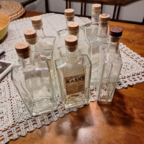 Jaloviinan vapaa-ajan tarjoiluastiasto. Sisältää 4 Jaloviinan peltimukia (2 isoa ja 2 pientä) 4 shottilasia, annostelija pulloon, lasin alusia ja aloittelevalle kotimuusikolle Jallun oma käyttämätön plektra.