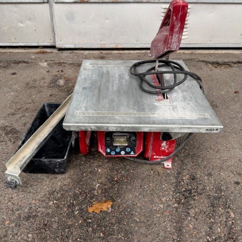 Ylimääräisenä 2 laattaleikkuria ja laminaattileikkuri. Laattaleikkurit 20€/kpl ja laminaattileikkuri 50€.