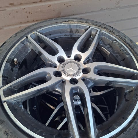 Mercedes-Benz w212 alta renkaat vanteilla.