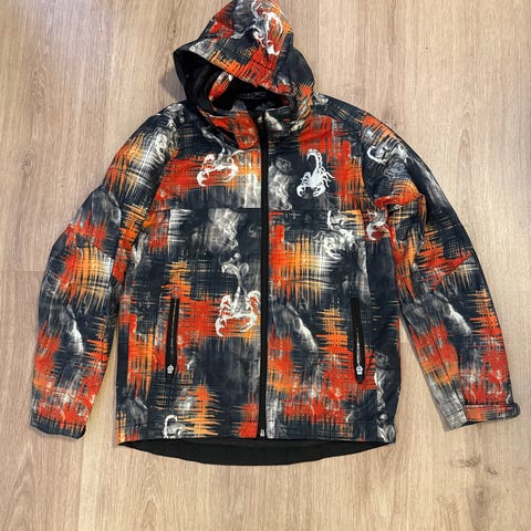 Kiinteä huppu, vetoketjutaskut. Sisällä pieni "vekki" , ei haittaa mitenkään käyttöä. Tarrat hihoissa. Merkki Trollkids. Väri on t.sin.Nouto pukinmäestä tai toridiili