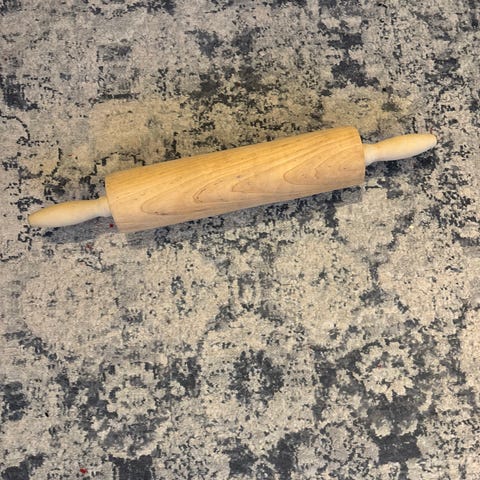 Puinen kaulin, kaiverrettu lumihiutalekuvioilla. Kuva painautuu pipariin kaulitessa. Pituus kahvoineen 43cm, rullan halkaisija 4,5cm.
