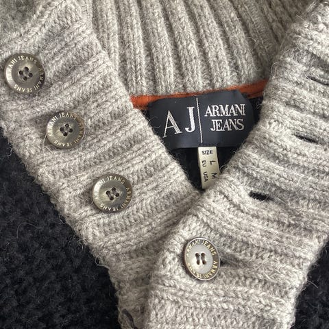 Myydään hyvässä kunnossa oleva Emporio Armani harmaa villa neule 52. Villaneule on siisti, eikä siinä ole reikiä tai tahroja.