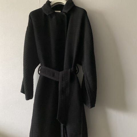 Klassinen paksuhko neuletakki, kietaisutyylinen. Kokomerkintä 42, pituus 77cm ja kai kai mitta noin 51cm, käytetty koossa m/l. Siistissä kunnossa
