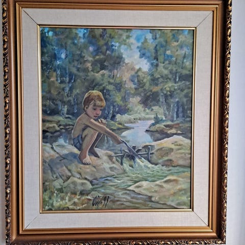 Öljyväri kankaalle. Ostettu aikoinaan Yhdyspankin huutokaupasta, pankin vähentäessä sijoituksiaan.
