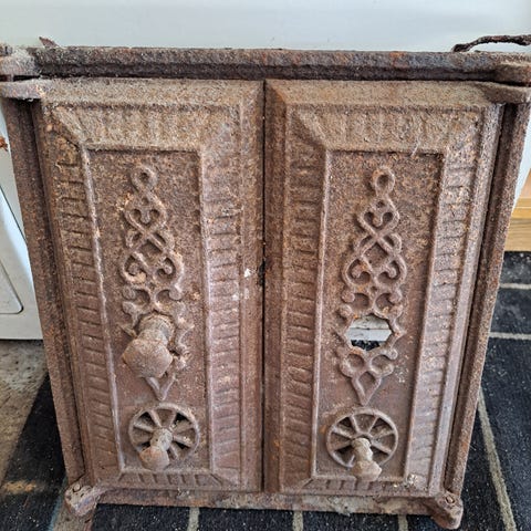Takan luukut kipinäverkolla ja tuhka-astia