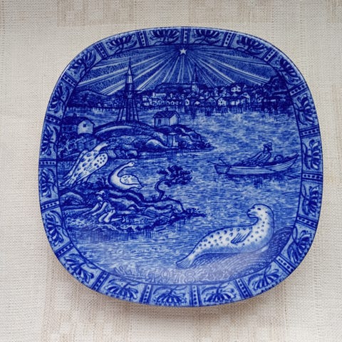 Rörlstrand joulu vuosilautanen 1974 alkuperäisessä laatikossaan. Sijaitsee Järvenpäässä. MMM. Nopeat kaupat, ei hupivarauksia