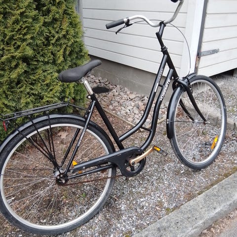 Hyväkuntoinen 7- vaihteinen kaupunkipyörä. Shimano Nexus vaihteisto, joka huollettu pari vuotta sitten. Samalla vaihdettu takaratas, eturatas/kammet ja vaihdevaijeri. Napadynamo. Valot eteen ja taakse syttyy napin painalluksella. Säädettävä ohjainkannatin. Joustatava satulatolppa ja joustohaarukka. Renkaat pari vuotta vanhat.