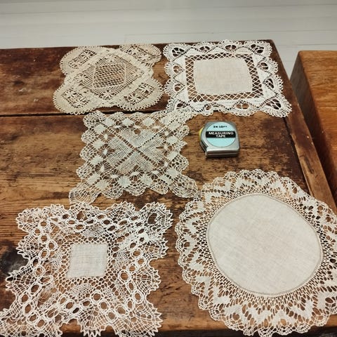 Kimaltavat ”kulta” pitsiliinat, pöytäliinat yhteishintaan 10 e
