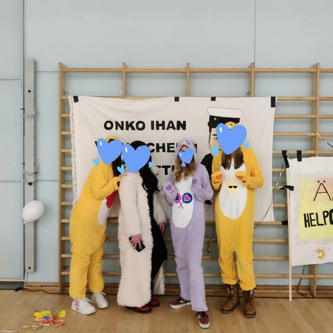 Ompelijalla teetetty vaaleansininen Halinalle-asu. Ollut kerran käytössä penkkareissa. Teetetty 170cm pitkälle M-kokoiselle, mutta menee helposti isommalle tai pienemmälle.