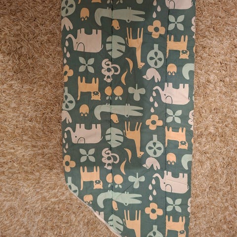 Retro 93-vuoden äitiyspakkauksen lämpöpussi ja peitto. Väri vihreä/lila. Hyväkuntoiset. Peitossa nukkaa.