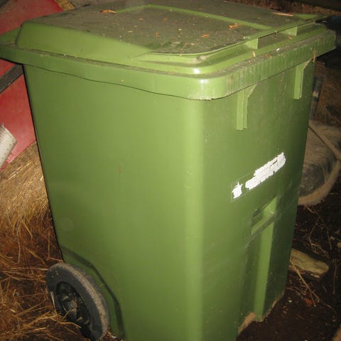 Kuvan mukainen vihreä jäteastia joutilaana. Vain nouto, ehkä lähiseudulle kuljetus.