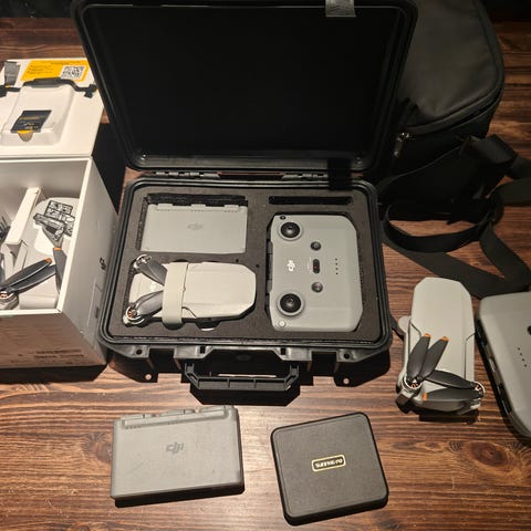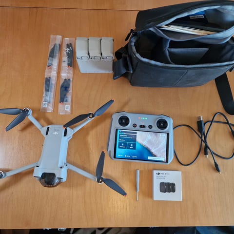 DJI Mini 3 on kevyt ja kompakti drone. dronen tekniset tiedot löytää hakemalla "dji mini 3 specs" Dronen on noin kolme kuukautta vanha ja sitä ei ole kertaakaan törmätty akuissa on noin 25sykliä jokaisessa. paketti sisältää Dji mini 3, inteligent battery chargin hub,kolme dji inteligent flight battery:ä, dji kantolaukku, kaula nauha ohjaimeen, nd filtteri setti ja Dji rc ohjain hinnasta voidaan neuvotella