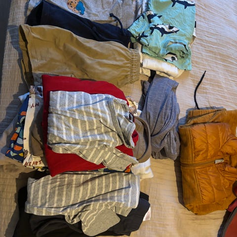 Myydään pojalle paketti hyvässä kunnossa olevia vaatteita (housut, t-paidat, neuleet).