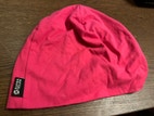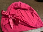 Myynnissä naisten Super Yellow merkkinen pipo.Väriltään vaaleanpunainen ja siinä on samanvärinen rusetti.