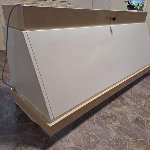 Myynnissä jykevä rakenteinen huuva keittiöön. Korkeus 80cm, leveys alhaalta 99cm, ylhäältä 61cm.