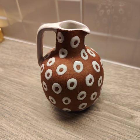 Myydään Anja Kantorin keramiikkateos, korkeus niin 20 sm. Hatusta on pala irronnut ja se on liimattu kiinni (kts. kuva), tämä huomioitu hinnassa