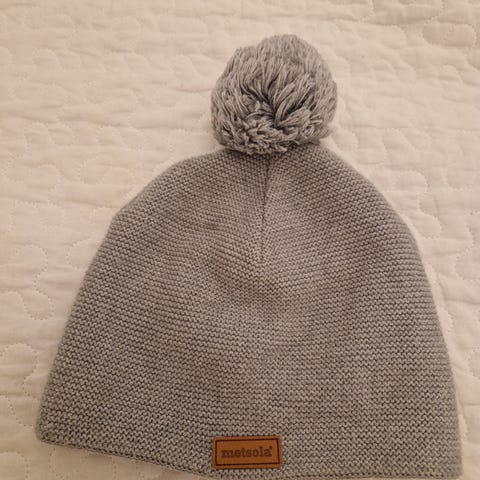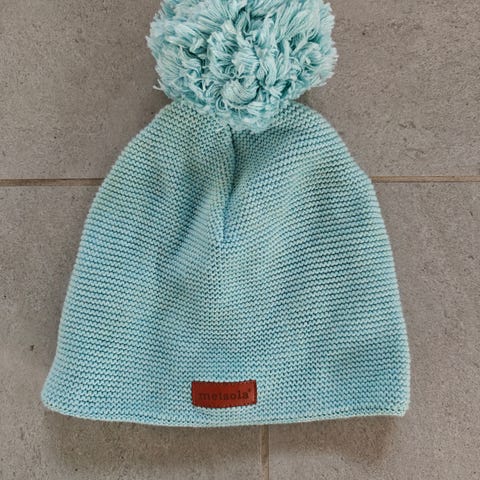 Metsola musta puuvillapipo, koko: 6-8 vuotta. Reunasta muoto vaikuttaa epämuodostuneelta, haitua, haalistumaa ainakin saumoissa.