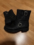 Myydään Rieker merkin mustat talvikengät, kokoa 36. Kengissä paksu vuori, vetoketju sisäsivulla sekä koristeelliset soljet.