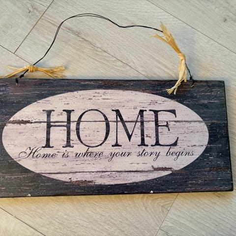 Mäntyinen kyltti Oma koti kullan kallis.