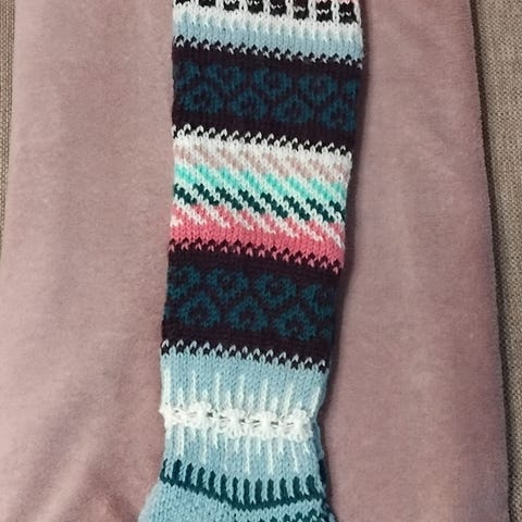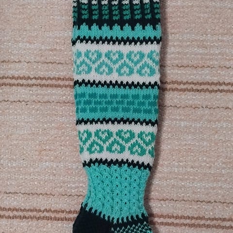 7 veljestä langasta neulotut sukat. Terän pituus 25 cm