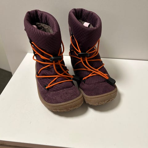 Saappaat ovat ehjät kaikinpuolin, mutta mokkanahan väri hieman kulunut. Meillä nämä ovat olleet käytössä enemmän välikausikenkinä, kuin talvella. Kengissä on villavuori ja päällinen on mokkanahkaa.
