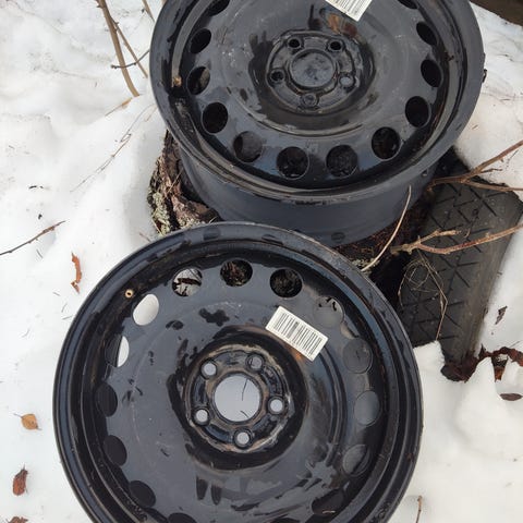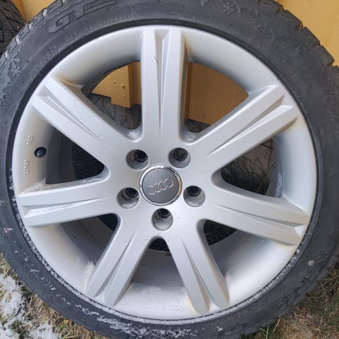 Audin alkuperäiset vanteet huonoilla talvirenkailla. Vanteet hyvässä kunnossa ja renkaat voidaan irrottaa. Et 45