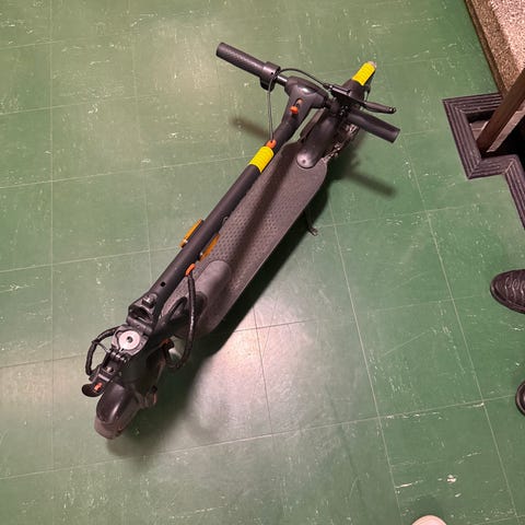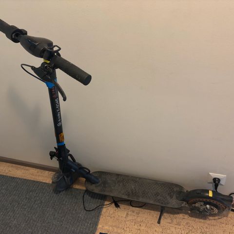 Hyväkuntoinen sähköskootteri Biltemasta, käytettiin noin 1 kuukausi, pari naarmua rungossa. Kestää latausta jopa 20 km. Kiinteät renkaat, yksi jousitus edessä. Mukana laturi.