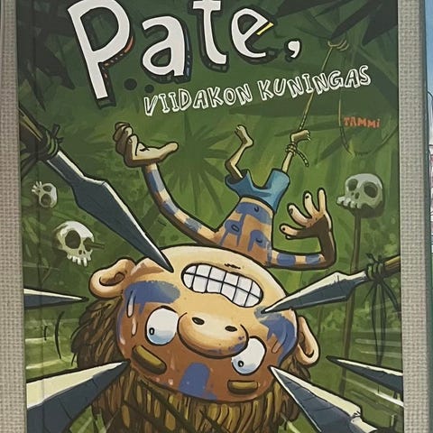 Timo Parvelan Maukka ja Väykkä -kirja. Takakannessa näkyvin kuluma.