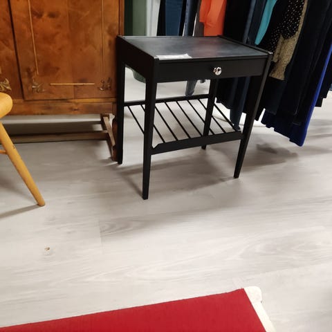 Häklin huonekalutehtaan tekemä teak tiikki yöpöytä lipasto sivupöytä