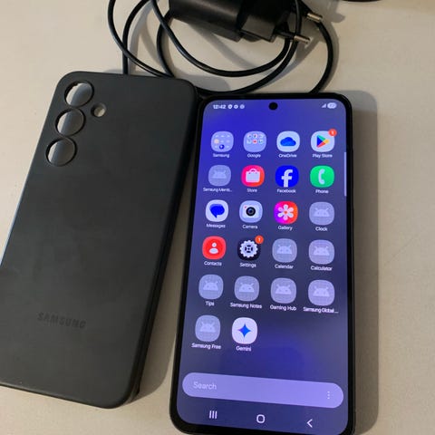 6kk vanha galaxy s24fe, joka ehti olla käytössä vain muutaman kk. Akun kunto siksi vielä 100%. Lompakkokotelo. Hyvä kunto.