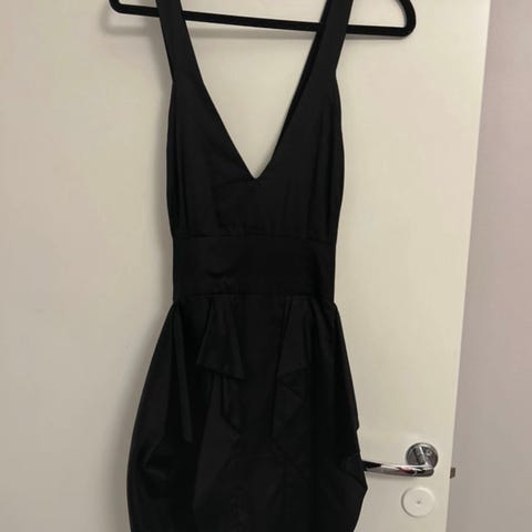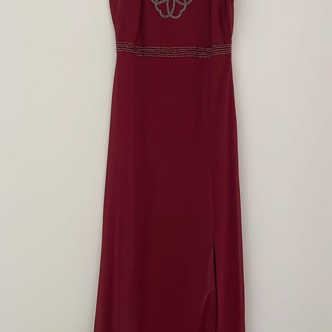 Tummansininen French Connection viskoositrikooinen täyspitkä iltapuku, koko 38.