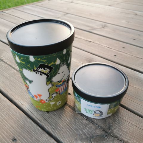 Muumipurkit tove 100. Olleet lähinnä vitriinissä. Molemmat kerralla.