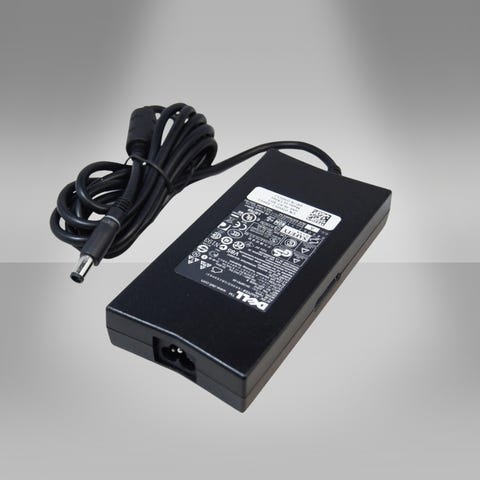 Dell kannettavan tietokoneen alkuperäinen virtalähde, jossa lähtöjännite 19.5V ja virta 4.62A. Mallinumero LA90PM130. Liitin on pyöreä, halkaisijaltaan 7.4 mm ulkohalkaisijaltaan ja 5.0 mm sisähalkaisijaltaan.