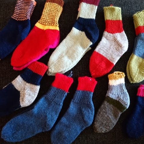 Myydään 3 paria villasukkia. Vihreät ja valkoiset uusia, siniset ehkä pari kertaa olleet käytössä.