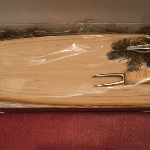 Ilmeisesti vaan koristeena seinällä roikkunut Marttiini kalasetti. Sisältää leikkuulaudan (lautaosa noin 40 cm ja kokonaispituus 54 cm korkeus noin 19 cm ja fileointiveitsi ja kalapiikki. Veitsessä teksti J.Marttiini Finland Hand Ground Stainless. Leikkuulaudassa ei naarmuja. Puu varmastikkin tummentunut ajan saatossa. Voi myös noutaa.
