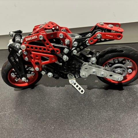 Kiihdytä matkaan kauko-ohjattavalla Ducati-moottoripyörällä. Virtaviivaisessa kilpamoottoripyörässä on toimiva jousitus ja valot ja mukana tulee kuljettaja.