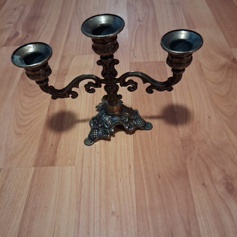 Metallinen kynttilänjalka. Korkeus 23 cm.