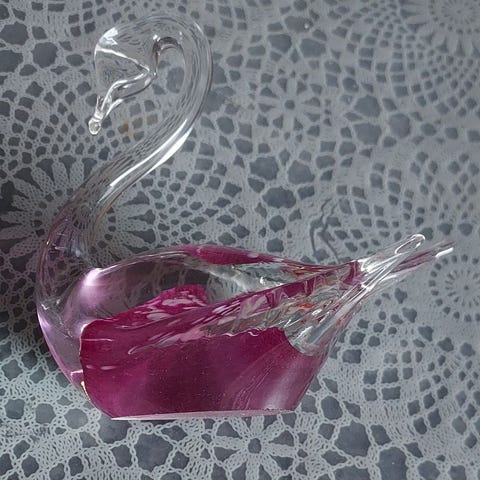 Myydään Studiolasin lasijoutsenet. Kirkas ja sininen. Korkeus n 8cm. Voin lähettää tarvittaessa