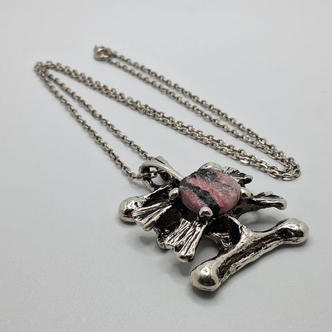 Toivekorun valmistama ja Kalervo Sainion suunnittelema tinariipus 1970-luvulta. Ketjun pituus on 59 cm, koruosan noin 4x5 cm ja kiven halkaisija 1,20 cm. Kivenä korussa on rodoniitti. Koru on käyttämätön, ollut vain korulippaassa.