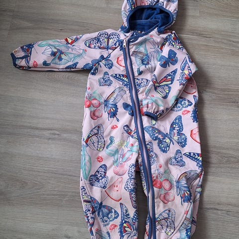 Välikausihaalari koko 92. Pieni reikä polven alapuolella (katso toinen kuva).