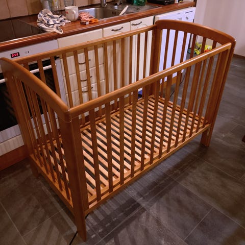 Sänky on purettu. Kaikki ruuvit pussissa.